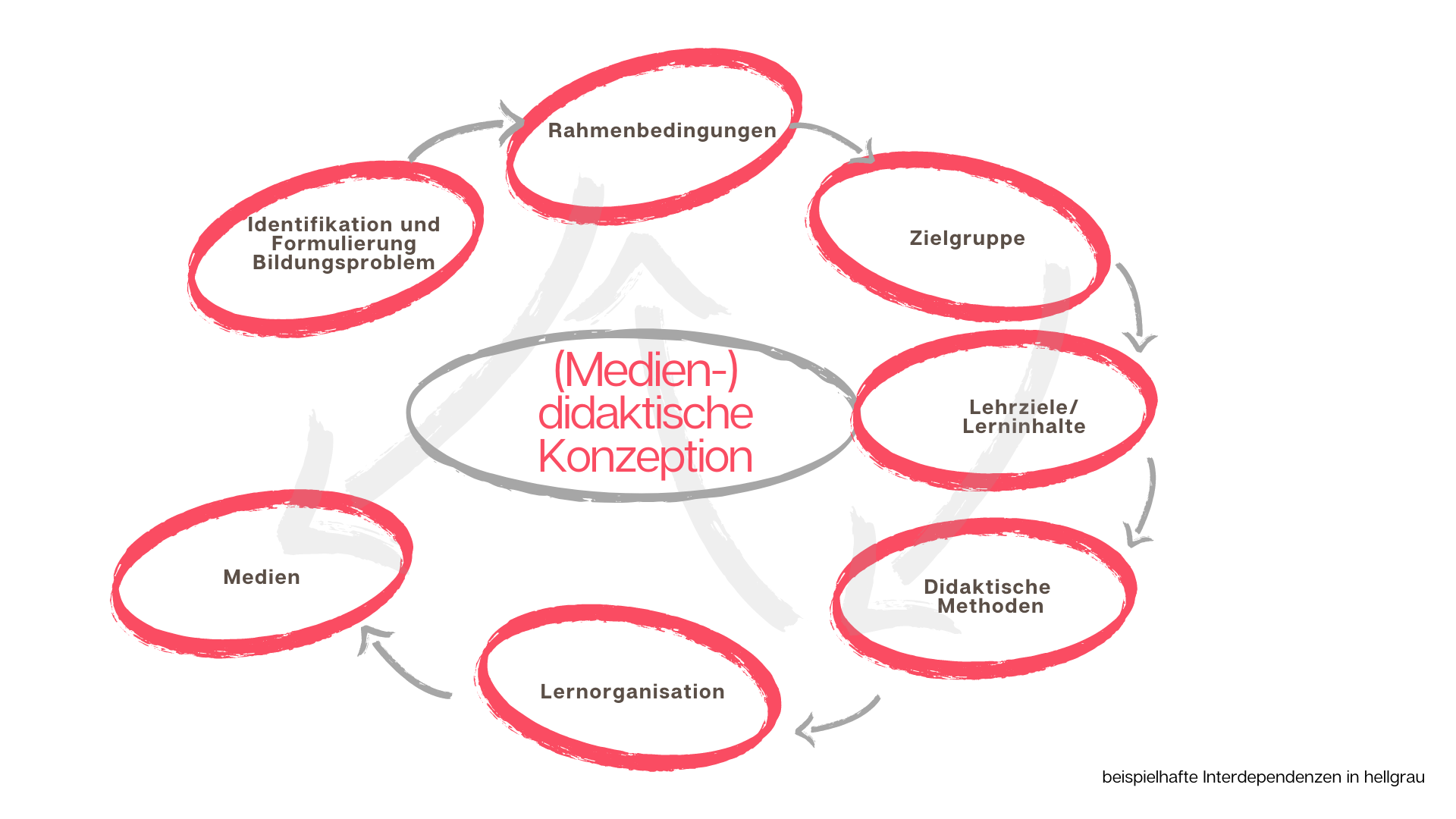 Mit Klick auf die Grafik erhalten Sie weitere Informationen zu den Planungsschritten einer mediendidaktischen Konzeption.