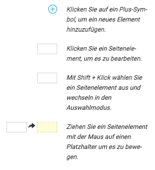Zum Verschieben eines Seitenelements, ziehen Sie es mit der Maus auf den gewünschten gelben Platzhalter.
