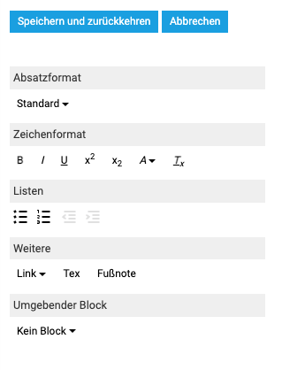 Für Texte erscheinen etwa Bedienelemente zur Formatierung, Medienobjekte können passend ausgerichtet oder mit Bildunterschriften versehen werden.