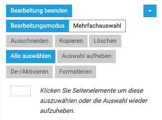 Mit Shift und Mausklick markieren Sie ein oder mehrere Seitenelemente und wechseln damit in den Auswahlmodus. Im Auswahlmodus können Sie die markierten Elemente löschen oder eine der weiteren Aktionen anwenden.
